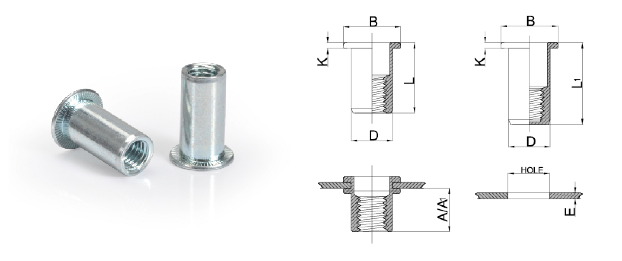F=Flat/P=Plain Body)/S=Steel/B=Blind |